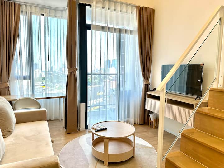 Сиамската Рама9 е рядък пълен дуплекс апартамент, висок 4,4 метра, спалнята и всекидневната са разделени, а използването на помещението е силно.