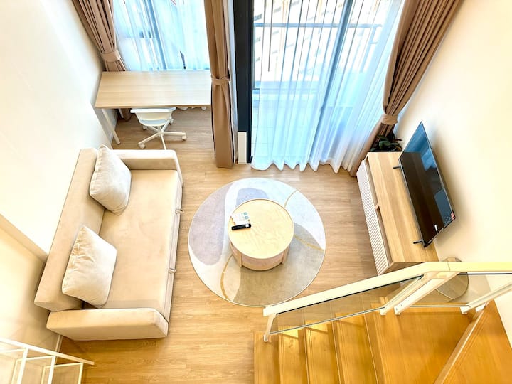 1. Дуплекс една стая (42 ㎡) Този дуплекс апартамент е уникален, за да направи престоя ви различен.Долното ниво има всекидневна с отворен план и кухня, където можете да се отпуснете и да се насладите на храната си; горният етаж е удобна спалня, предлагаща тихо лично пространство.Модерен дизайн и изящно декориран, за да направи престоя ви удобен и удобен.Това уникално място е особено подходящо за двойки или малки семейства, които носят дом далеч от дома.