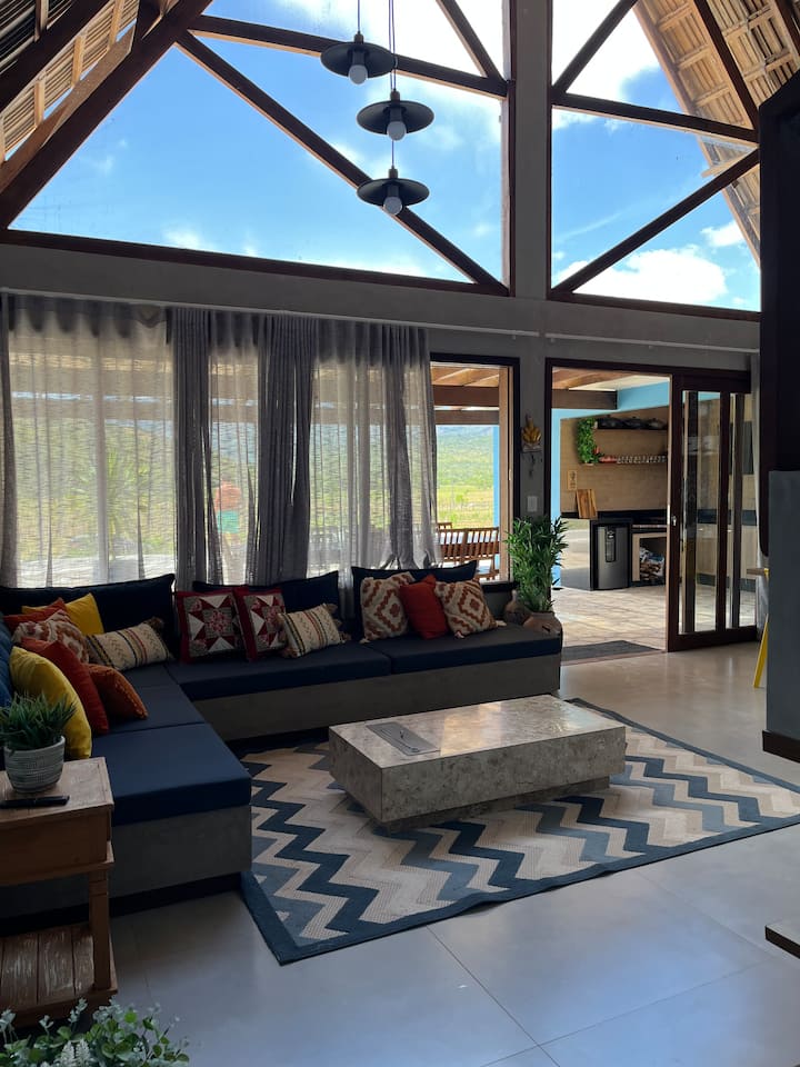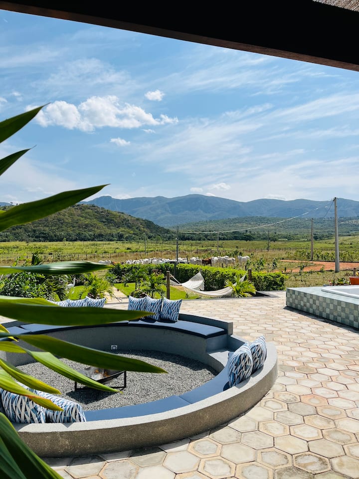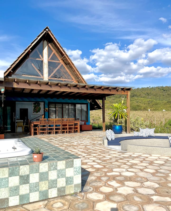 Шале със хидромасажна вана и изглед към планината Итаиту