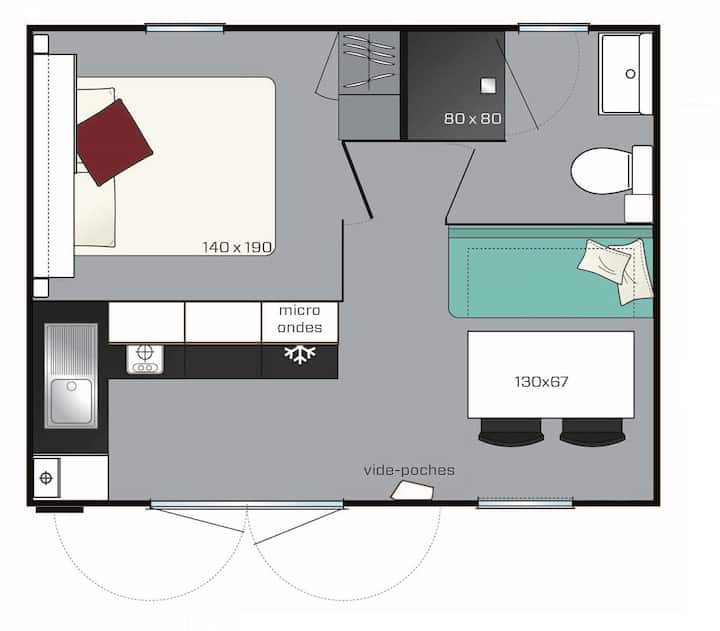Мобилна къща с климатик за 2-ма души с 1 спалня