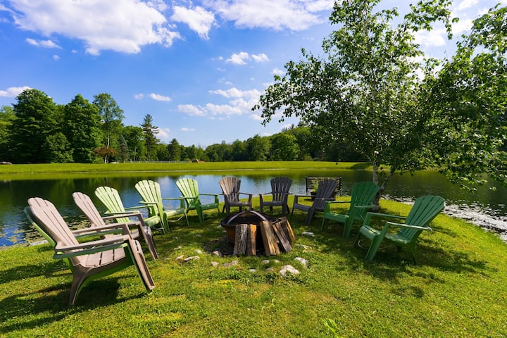За тези, които търсят спокойствие, природата на Съни Понд е идеалното място за бягство. Отпуснете се в някое от откритите жилищни помещения за сутрешното си кафе или се излежавайте с следобедна книга. Простиращите се тревни площи и детска площадка предлагат достатъчно място за дейности. Отидете да поплувате в езерото, качете се на една от предоставените лодки с педали или се потопете в слънцето на кея. Можете дори да се разходите до острова насред езерото, достъпно чрез мост. Това е идеалното място за риболов с улов и освобождаване! Когато слънцето започне да залязва, съберете се около огнището, за да препечете бонбони и да разкажете истории. Отпуснете се от деня в една от седемте удобни спални, всяка от които осигурява спокоен нощен сън.