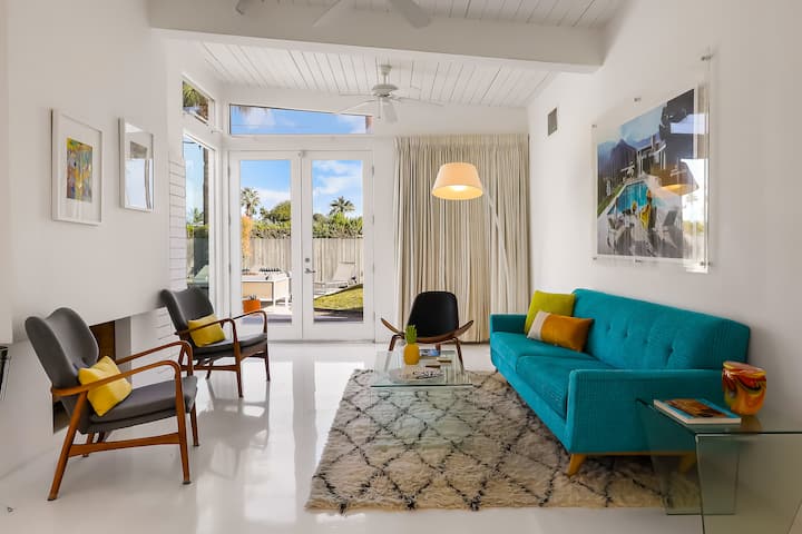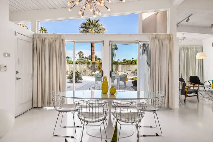 Представете си се в този разширен и добре обновен дом от средата на века, проектиран от Палмър и Крисел и построен от Alexander Construction in Racquet Club Estates, със своята пост - греди конструкция, големи прозорци, отворен план на етажа и невероятна гледка към искрящия син плувен басейн и драматичните планини Сан Хасинто е всичко, което обичаме в Палм Спрингс, всичко това в един страхотен пакет.
