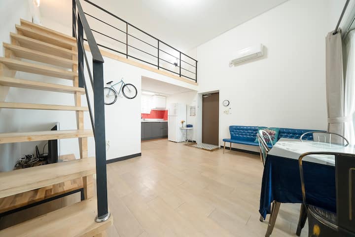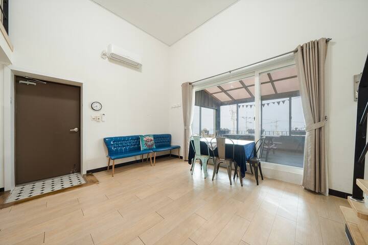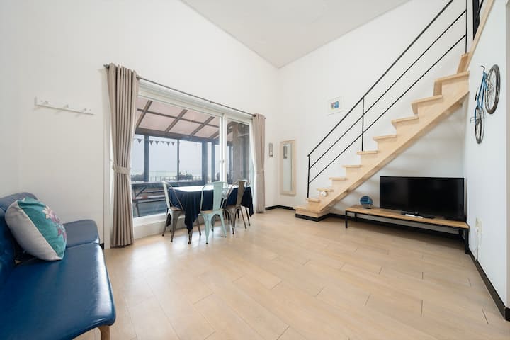 Хилинг квартира с изглед към морето в Йосу, номер 103, двуетажно легло, с изглед към океана, самостоятелно барбекю