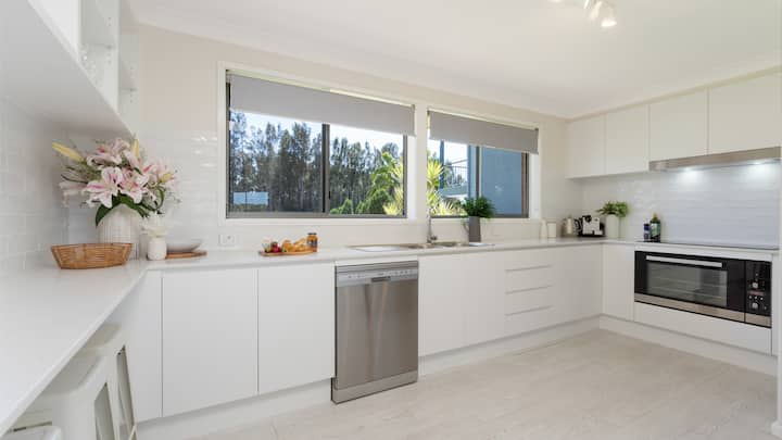 Добре дошли в Riverside Retreat - уютен дом на брега на спокойната река Шолхейвън. Насладете се на директен достъп до вода, частен кей и отлично местоположение само на 10 минути от плажа Бери и Шолхейвън. Идеален за семейства, домът е удобен за настаняване до 10 души с 2 външни пространства и детско убежище. Идеалното място за любителите на природата и търсачите на приключения е идеална база за разходки с лодка, голф, дегустация на вино, сърфиране и разглеждане на местни пазари и кафенета.