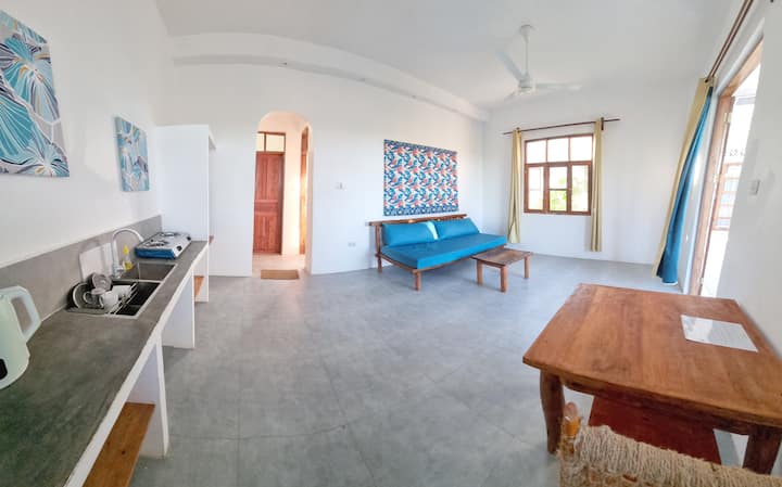 Еко - апартаментите Zendaya Zanzibar Paje предлагат на гостите колекция от екологични, модерни апартаменти, предназначени за комфорт и устойчивост. Всяко помещение е внимателно обзаведено със съвременен декор, климатик, Zanlink Wi - Fi и енергийно ефективна слънчева енергия. В зависимост от избора ви можете да се насладите на уютно едностайно студио или помещение с отделна спалня и всекидневна - всичко това с напълно оборудвана кухня, пералня и ютия, за да направите престоя си удобен. Имотът разполага и с пищни озеленени градини, освежаващ плувен басейн и охраняем паркинг. Разположен в центъра на Пахе, вие сте само на минути от плажа, местните магазини и ресторанти, осигурявайки спокойна и обогатяваща кратка почивка в Занзибар.