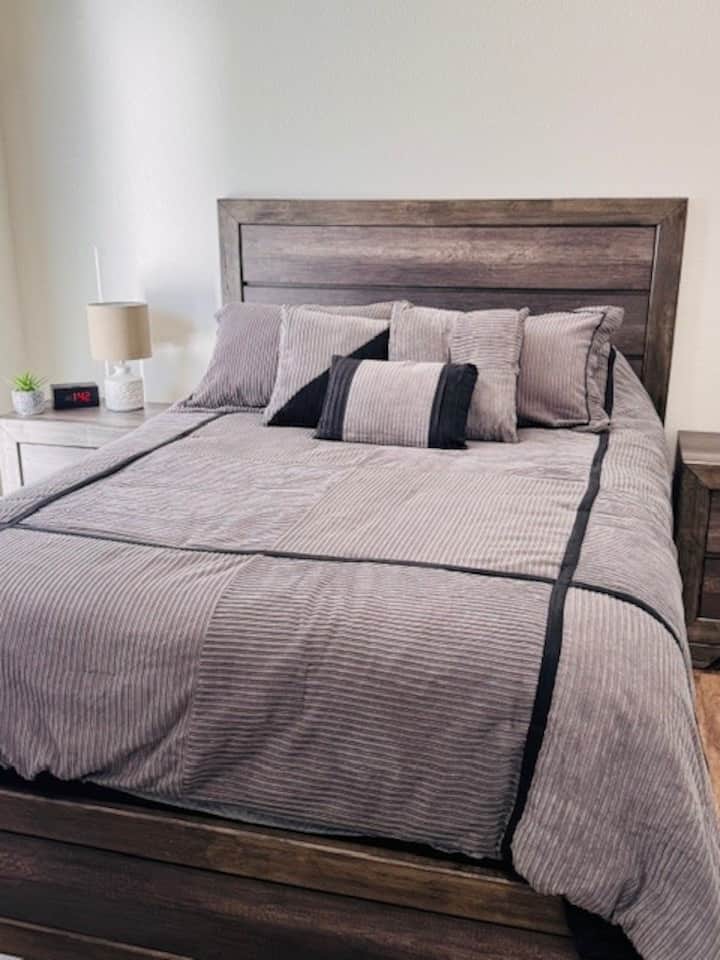 Новоремонтиран с 2 легла, 2 бани и навес за кола!