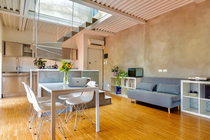 Добре дошли в модерно отворено пространство на два етажа, с тераса, в района на Корсо Гарибалди