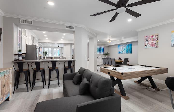 Луксозен таунхаус с площ от 3000 кв. фута с 8 легла и всички удобства на дома в сърцето на плажната атмосфера на Карлсбад! Кратка разходка до плажа, селски ресторанти, пазаруване и развлечения. Разгледайте известния знак за забележителности Карлсбад и гледката към океана от нашите издигнати вътрешни дворове. Игрова стая! Голяма всекидневна и кухня. **Като правите резервация, вие се съгласявате, че сте ПРОЧЕЛИ и ПРИЕЛИ нашето описание, правилата ни за отменяне, вътрешните правила на дома и „нещата, които трябва да знаете“.