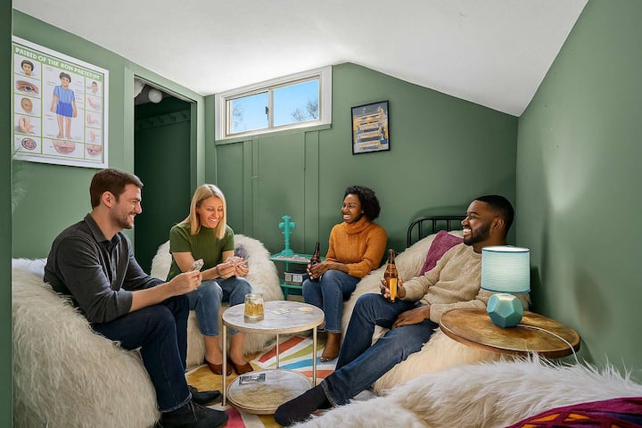 Насладете се на Луисвил в този уютен ваканционен дом до първия и оригинален бар за пинбол в града с над 40 вида бърбън и уиски. С двойно легло, разтегателен диван, пълна кухня, Wi-Fi, пране и външно пространство, той е идеален за Kentucky Derby, Bourbon Trail, Bourbon & Beyond, Louder Than Life или събития в Churchill Downs & Expo Center. Подходящо за домашни любимци, подходящо за семейства и идеално за кратки или продължителни престои близо до центъра, Сентръл Парк и историческия Олд Луисвил. Резервирайте уютния си престой сега!