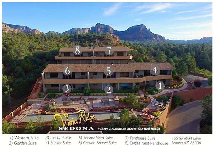 Vista Ridge Luxury Rental Condos се намират в квартал Седона Ъптаун, в тих квартал, сгушен срещу пустинята Коконино Форест. Удобно разположен до луксозни заведения за хранене, пазаруване, туризъм, с невероятна гледка.
