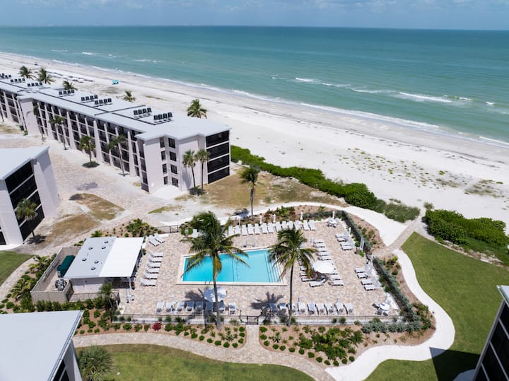 Басейнът на общността ни отново отвори врати през лятото на 2025 г. след цялогодишна реконструкция – просто зашеметяващ е! Разположен на самия бряг, този оазис откъм залива е най-близкият басейн до залива в целия Санибел. Той предлага несравними гледки към океана, приятен бриз и много шезлонги и чадъри, които осигуряват релакс и сянка. Най-хубавото е, че този басейн е БЕЗПЛАТЕН за използване по време на престоя ви!