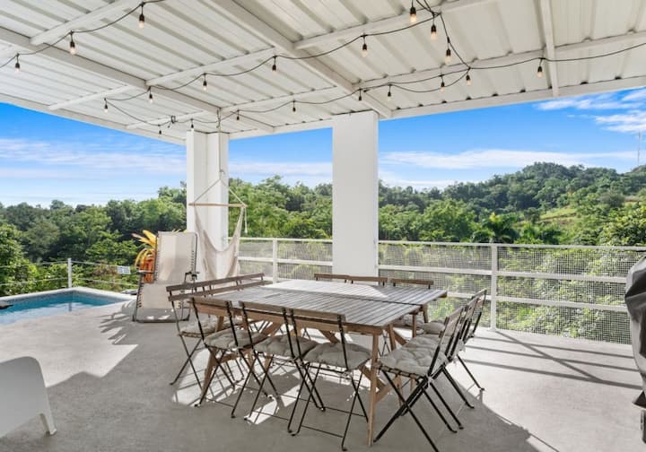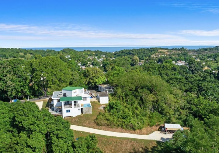 Насладете се на този голям имот, разположен в Агуада и граничещ с Ринкон, с множество места за отдих. Остават ви 8 - 10 минути както до центъра на Ринкон, така и до Агуада и само на 3 минути от плажа. Можете да отседнете в климатизираната къща и да се насладите на океанския бриз и гледката към океана, можете да се отпуснете на терасата до басейна или да плувате в основния басейн. Разполагаме и с друг басейн за къпане в преустроения и напълно климатизиран училищен автобус. Автобусът разполага със собствен малък кухненски бокс на ОТКРИТО, ВЪНШНА СЕЛСКА баня на открито и барбекю, както и кафемашина.