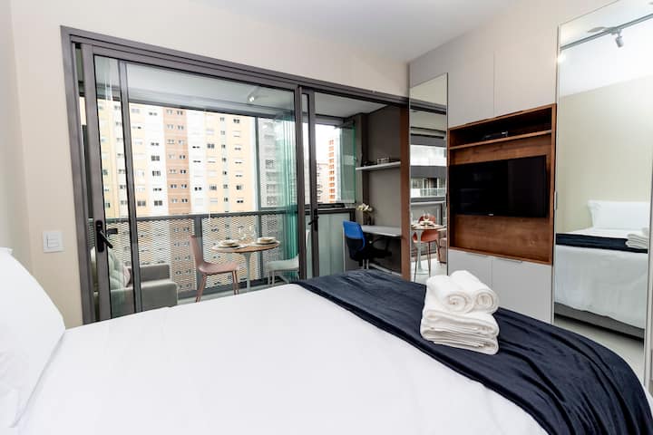 Самостоятелно помещение, с интегриран балкон, цифрово самостоятелно настаняване, оборудвани кухни, високоскоростен Wi - Fi, пълно спално бельо, климатик и др.
