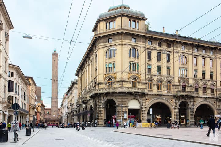 Улица „Рицоли“ е една от главните оси на историческия център на Болоня – тя свързва площад „Маджоре“ с двете кули и е заобиколена от най-красивите аркади в града. От тук можете да стигнете пеша до Quadrilatero, ресторантите в центъра, музеите и целия градски живот за няколко минути. Летище Болоня е на 11 км.