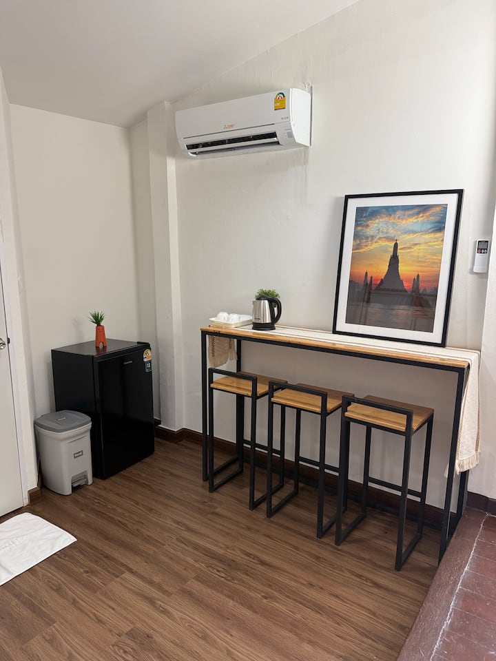 🛕 Уютен дом на няколко крачки от храма Уот Арун и река Чао Прайя, в историческия стар град на Банкок. Само на 5 минути пеша от метрото за лесен достъп до града. Потопете се в тайландската култура: опитайте традиционна тайландска рокля, посетете древни храмове като Ват Арун - един от най - известните храмове в Тайланд, насладете се на автентични улични лакомства като хрупкави палачинки, изследвайте скъпоценни камъни от стария град или се разходете с лодка по реката. Сърдечните домакини ще ви накарат да цените престоя си. Готови сме да ви посрещнем!
