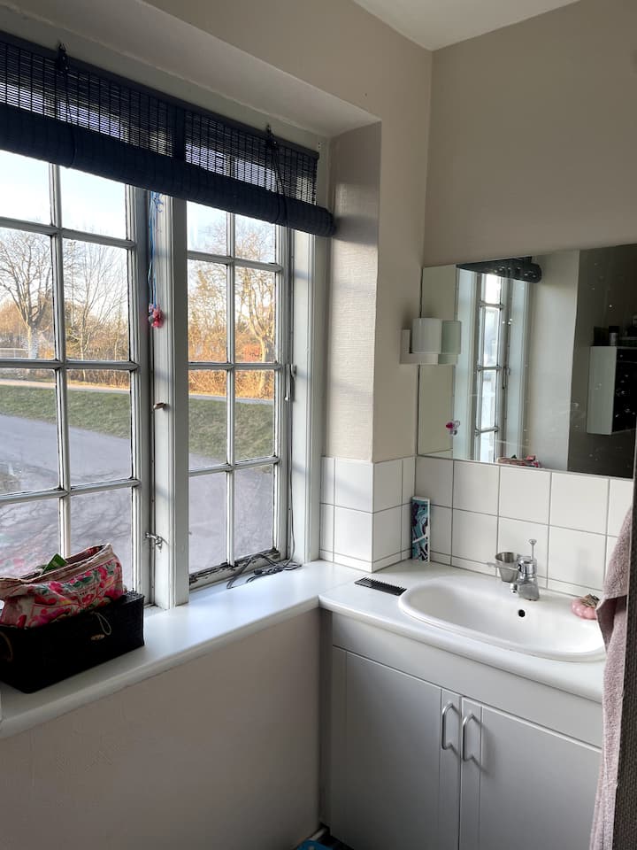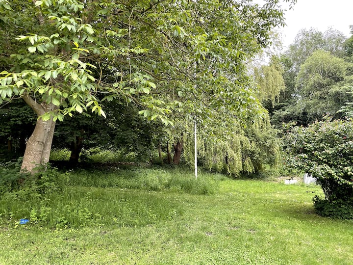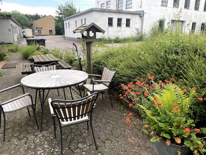 Ние сме семейство от 4 души, които с нетърпение очакваме да посрещнем щастливи гости. Йеспер е запален почитател на рециклирането и има собствена компания, която се занимава с рециклирани строителни материали. Имаме две прекрасни деца – дъщеря ни Сол е родена през 2013 г., а синът ни Фолке – през 2015 г. Джети е обучен майстор по издухване на стъкло и има собствена работилница за издухване на стъкло в Копенхаген. През 2019 г. се преместихме от плаващото си жилище в Копенхаген в Соро, защото ни липсваше градината и природата. Имаме и сладкия си котарак Лео и 6 пилета.