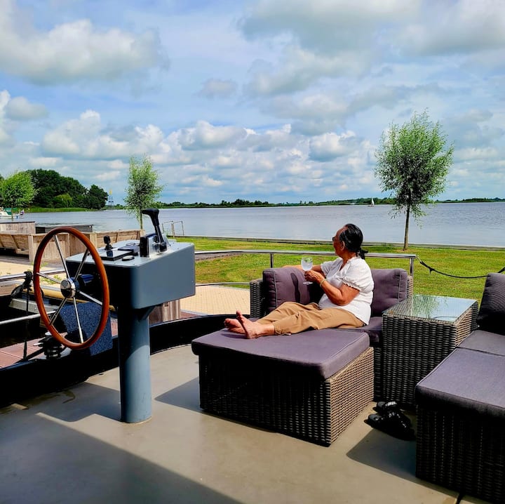 Резервирайте нощувката си на борда на елегантния HomeShip „Blue Sky “. С първокласно местоположение на гледката към Sneekermeer със самостоятелна тревна тераса! Този кораб не се отдава под наем като лодка за самостоятелно плаване. Освен тихото отдаване под наем, акостира (основна цена), можете, разбира се, да резервирате фантастично плавателно изживяване при нас. Можете да изберете от следните ПОДОБРЕНИЯ: круиз или плаване с лодка.