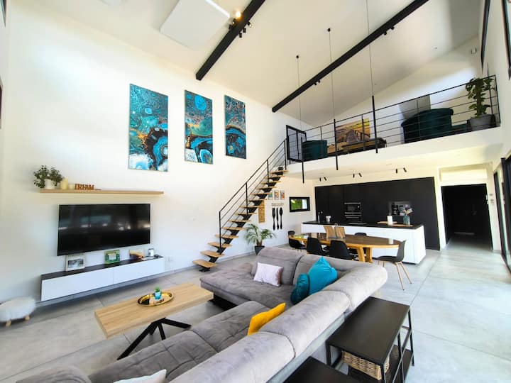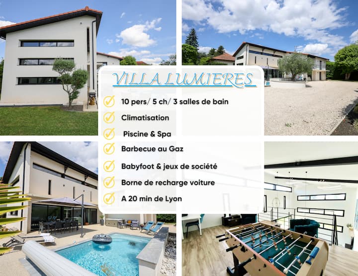 Вила с много светлина, спа, заряждане на превозни средства, близо до Лион