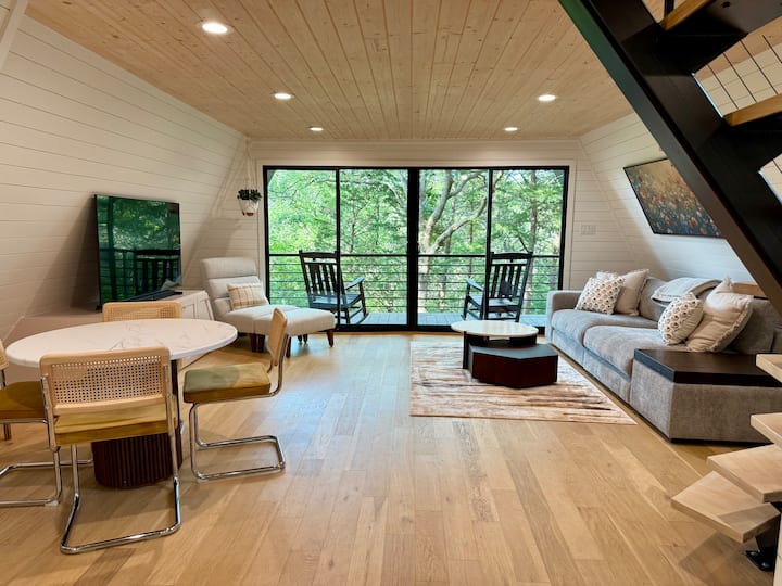 Дървена колиба с A-образна форма, сгушена сред дърветата | Езеро Тексома