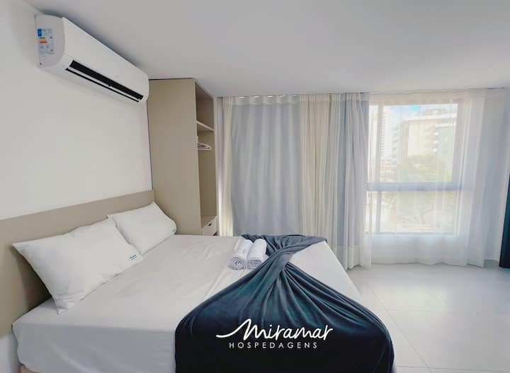 Насладете се на моменти на спокойствие и комфорт в този очарователен апартамент в Story Luxor, разположен в квартал Jardim Oceania. Идеален за до 2 души, апартаментът разполага с климатик, място за организиране на дрехите ви и практична кухня, оборудвана с най-важното за приготвяне на бързи ястия. Широкият панорамен прозорец предлага изглед към града и частичен изглед към морето, което прави престоя ви още по-специален. Идеално за тези, които търсят комфорт и страхотно местоположение.