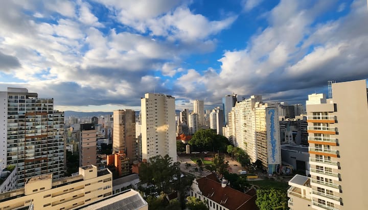 Добре дошли в луксозното и комфортно изживяване на емблематичната улица „Кайо Прадо“ в сърцето на Сао Пауло! Този уникален апартамент, на границата на Консоласао с Хигиенополис, съчетава съвременен дизайн, луксозни удобства (включително гараж) и спираща дъха панорамна гледка към града. Пригответе се да се насладите на всеки детайл, проектиран така, че престоят ви да бъде незабравим, от най-модерните технологии до пълноценен отдих в апартамента, идеален за всички възрасти.