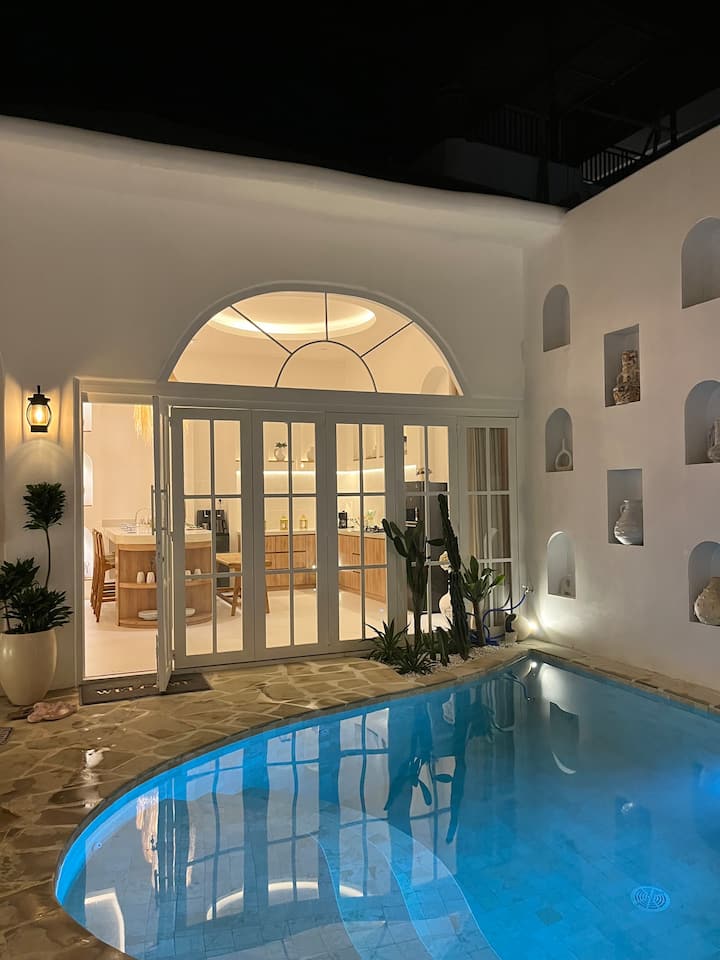 Бохо-средиземноморски| 2 спални | Самостоятелен басейн и вана