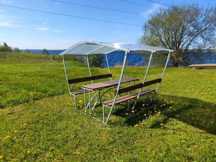 Кемпер с площ 40 м² и голяма тераса край водата