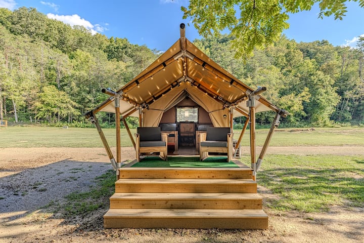Палатка за сафари Luxe Creekside |Firepit|HVAC|Спа баня