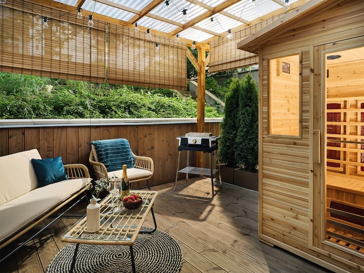 Частна сауна и барбекю в Карлин - Апартамент с тераса +Паркинг