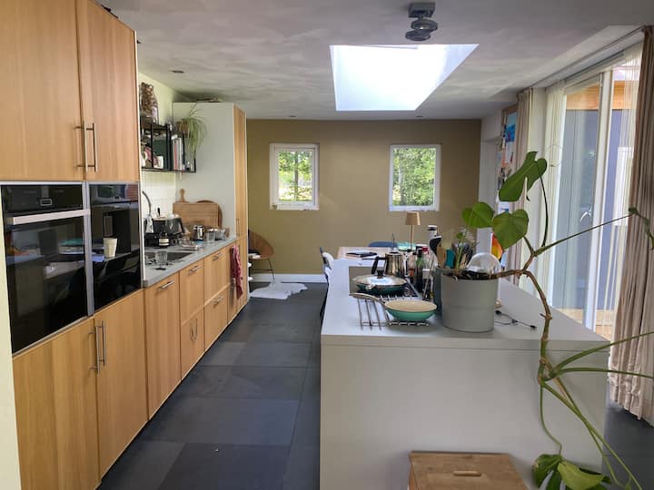 С голямо удоволствие живея в тази красива къща в Патерсволде от 19 години. От градината се разхождате директно сред природата и можете да се насладите на прекрасни разходки. С велосипед можете да стигнете до оживения град Гронинген, с хубави тераси, ресторанти, форума и Мартиниторен. През лятото можете да плувате или да се качите на лодка на Paterswoldsemeer. Чувствам се благословен да живея тук и да се наслаждавам да споделям това приятно място с други хора. ✨