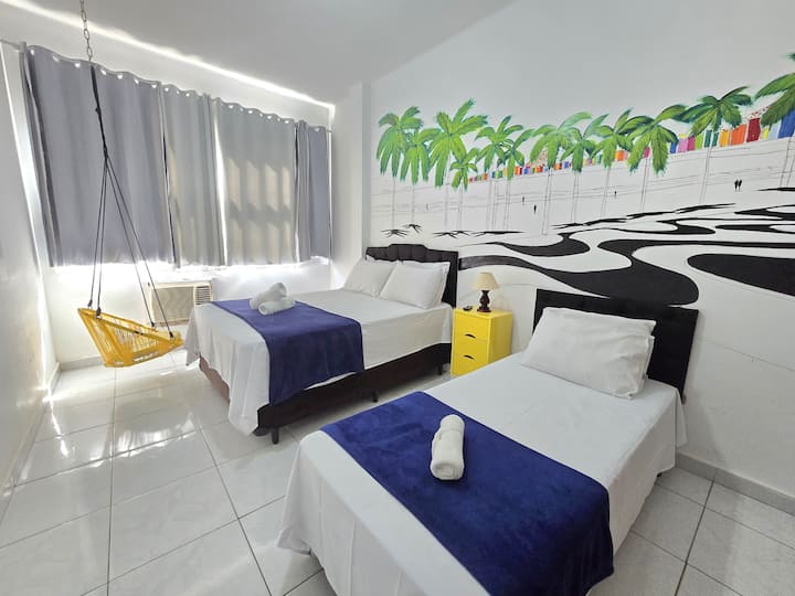Сградата се намира на Avenida Atlântica, Rua da Praia de Copacabana. Метростанцията в Кантагало е само на пет пресечки. Заобиколени сме от ресторанти и пазари и на няколко километра от търговския център и кварталите Ипанема и Леблон.