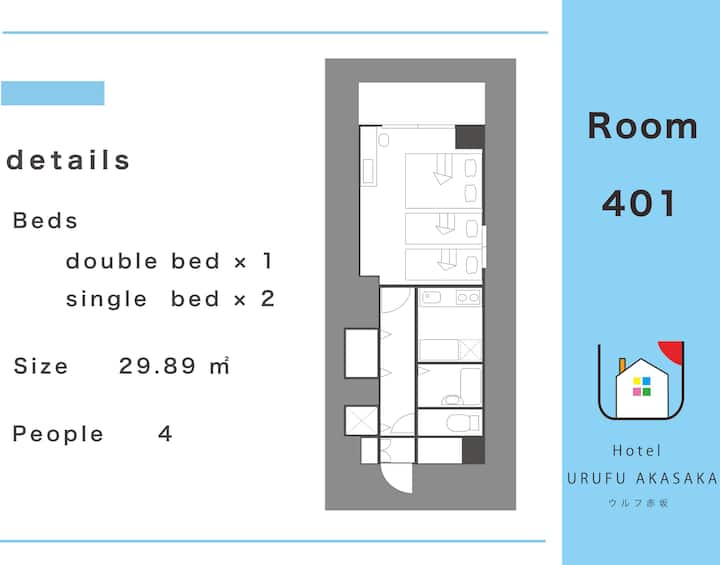 [Предварителна цена] На 5 минути пеша от гара Акасака! Най-висококачествените легла Serta, използвани в 5-звездни хотели