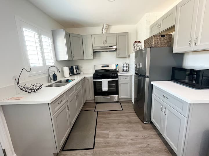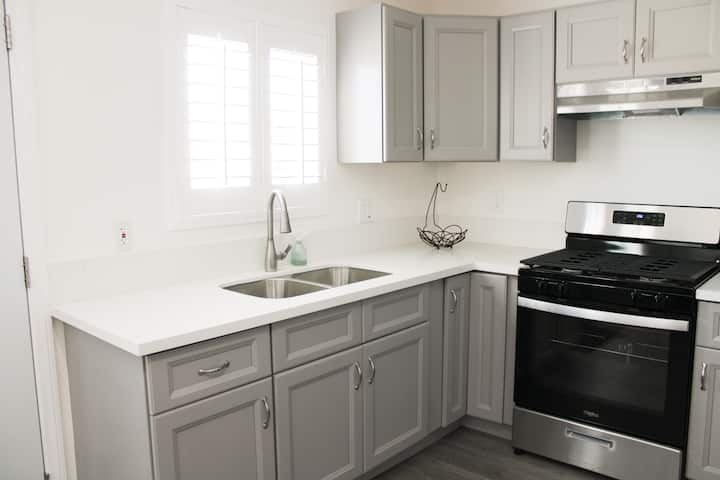 Забравете притесненията си в това просторно и спокойно място. Красив ЧИСТО НОВ апартамент с 1 спалня и 1 баня с отделен вход в тих и безопасен квартал. Възползвайте се от достъпа до освежаващия ни басейн и вътрешен двор и се насладете на истинска почивка в свободното си време. Това тихо и безопасно място е напълно обзаведено и разполага с всичко, от което се нуждаете, включително всички чисто нови уреди, нова кухня, баня и подове, Wi-Fi, пералня и сушилня вътре в жилището ви и смарт телевизор, оборудван с любимите ви приложения за стрийминг.