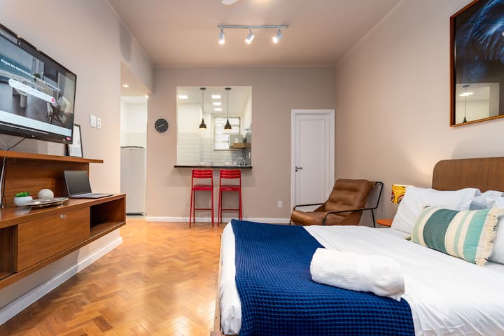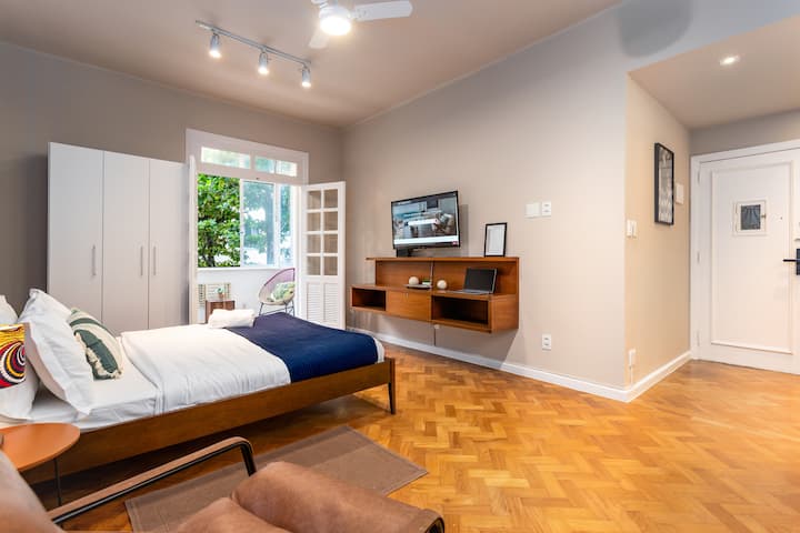 Модерен апартамент на плажа с балкон и домашен офис в Копакабана