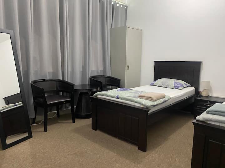 Две единични легла – споделена баня/без паркинг