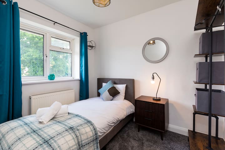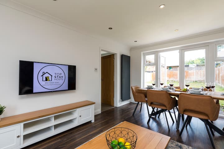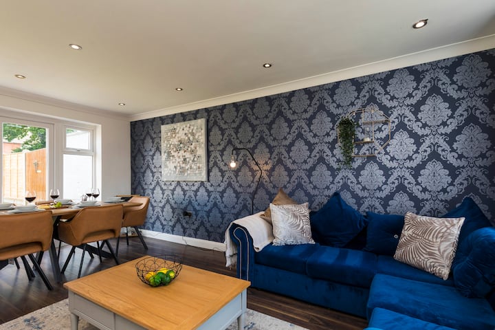 Модерна къща с 3 спални и 2 бани (1 самостоятелна) в центъра на Кроули – идеална за изпълнители, семейства или бизнес гости. Насладете се на просторна всекидневна, трапезария, напълно оборудвана кухня, частна градина, паркинг и бърз Wi-Fi. Наскоро обновени за комфорт и стил. Лесен достъп до магазини, ресторанти и летище Гетуик. Резервирайте мястото си за престой още днес!