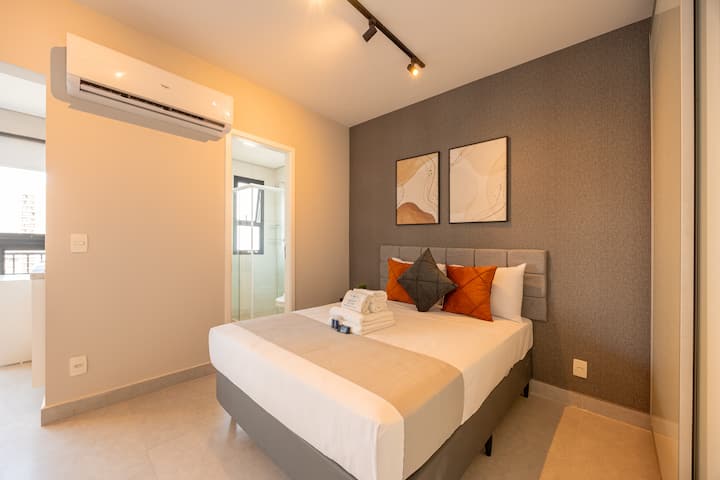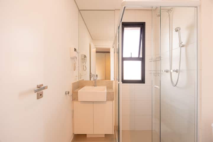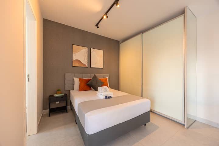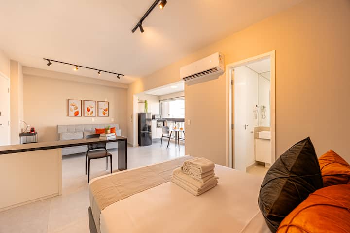 Това очарователно студио, на минути от летище Congonhas Airport, предлага комфорт и практичност. С 35 m² добре разпределено пространство, включва индукционна печка, Wi-Fi и всички удобства на дома. Идеално за отдих.