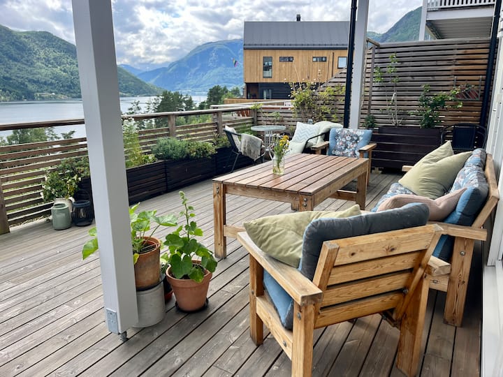 Модерен апартамент в близост до фиорд, планина и гора