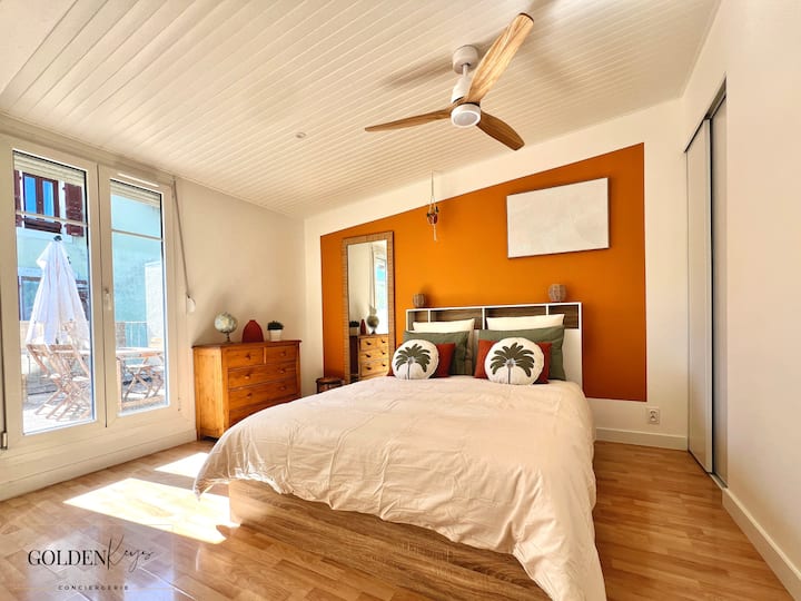 - Просторната и слънчева тераса, оборудвана с планча през лятото: истински плюс за отдих и готвене на открито