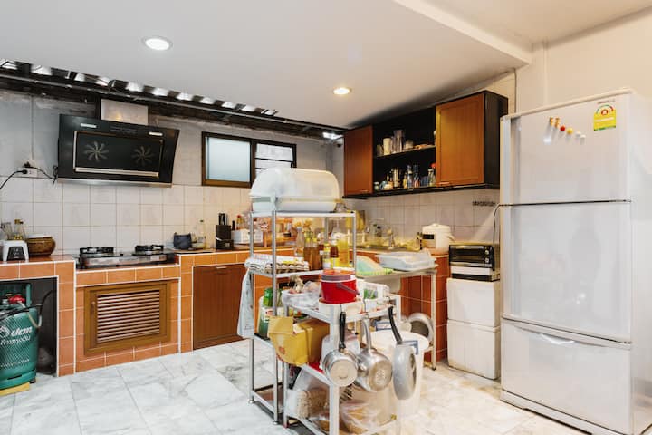 В Huai Khwang . Близо до Huai Khwang MRT 2minis с кола, Suttisan MRT също. Приятно сутрешен пазар 1 минис. Яжте толкова специална юфка през нощта. Панаир на Джауд в Централен Рама9 с влак. Добро място за вас.
