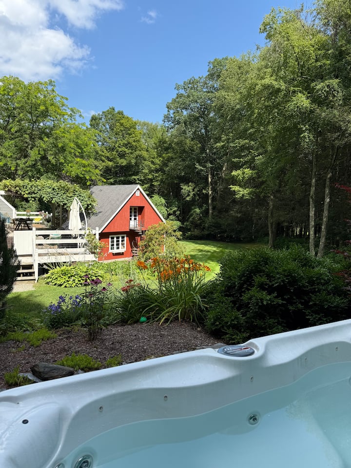 Красива къща в гората: огромен двор, хидромасажна вана