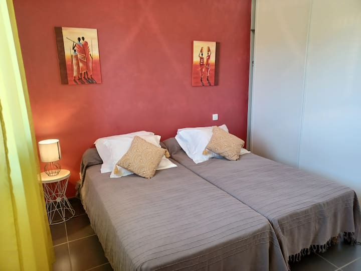 Апартамент с отопляем басейн 2 спални 1 км до реката