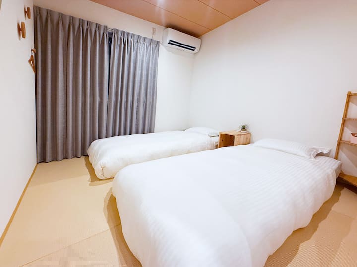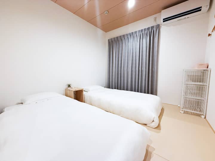 Луксозен декор/2 минути пеша от станция Тянся Чауу/3 спални, 5 легла, може да побере 6 души/Летище Кансай, Шинсайбаши, Даотенг, Нампо, Умеда, USJ