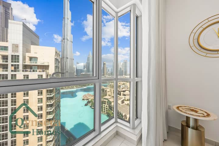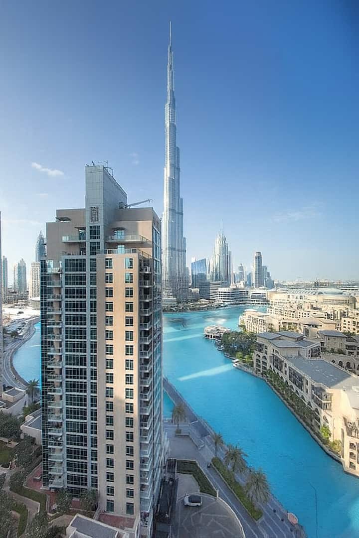 Почивка с изглед към емблематичния Бурдж и фонтан