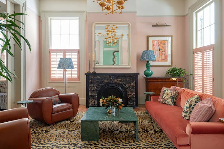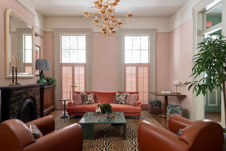 Тази обява е за цялата сграда: двуетажно имение на улица Prytania с място за до 16 гости. (Ако се нуждаете от допълнителни стаи, разгледайте съседните имоти Muses Lyra и The Avery в профила ни на домакин.)
