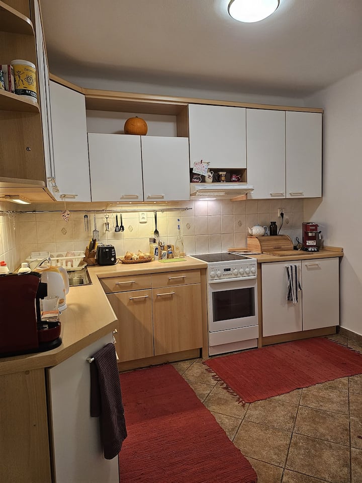 Много хубави ресторанти, пъбове, клубове, кафенета, магазини, хранителни стоки (ден и нощ), супермаркет (Billa 5 мин.), обмен на пари на добра цена и всички други клубове и кафенета са на пешеходно разстояние. Прага е МНОГО БЕЗОПАСНО МЯСТО. Да се приберете или да излезете през нощта не е голяма работа. Има Wi-Fi. Заповядайте и се насладете. Очакваме ви с нетърпение!