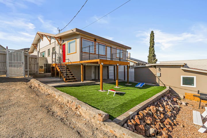 Друг имот до обзаведени домове в Ел Пасо. Този ремонтиран дом с 2 спални/2 бани предлага светла всекидневна с диван и 58-инчов смарт телевизор. Спалните включват двойни легла, бюра, затъмняващи завеси, гардероби и 43-инчови телевизори. Едната спалня има собствена баня с душ и тоалетна, а втората има директен достъп до баня с душ. Гответе в напълно оборудваната кухня с газова печка, хладилник, микровълнова печка. Самостоятелна пералня/сушилня. Маса за хранене с 4 стола плюс бар. Паркиране извън улицата за 1 превозно средство.