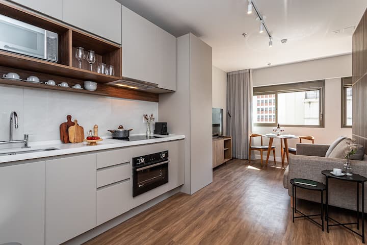 Насладете се на най-доброто от Сао Пауло, като отседнете в този модерен и уютен апартамент тип „студио“, адаптиран за хора с намалена подвижност, в Айра Хигиенополис.