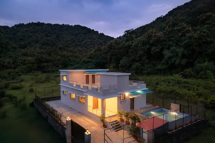 Hilltop 3 bhk Getaway с басейн, тераса и гледка към хълмовете