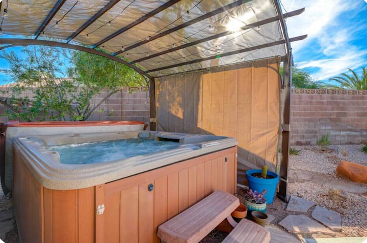 Пустинен оазис с хидромасажна вана, мини голф, голямо двойно легло и барбекю